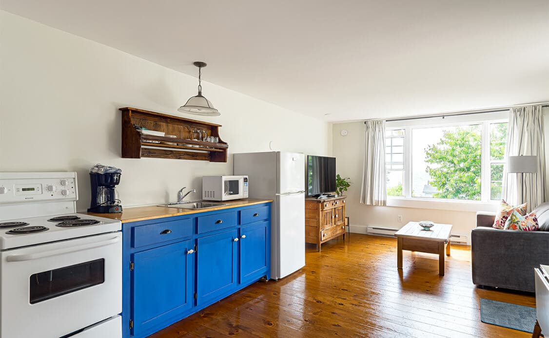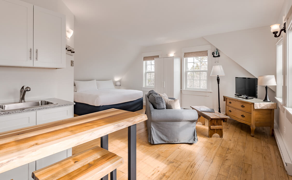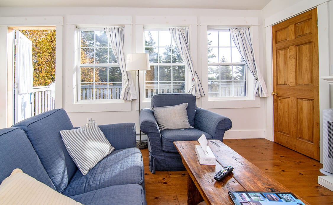 Our Hollyhock suites are located next to the main lodge. These suites have gorgeous ocean views and are designed to feel quintessentially Nova Scotian.